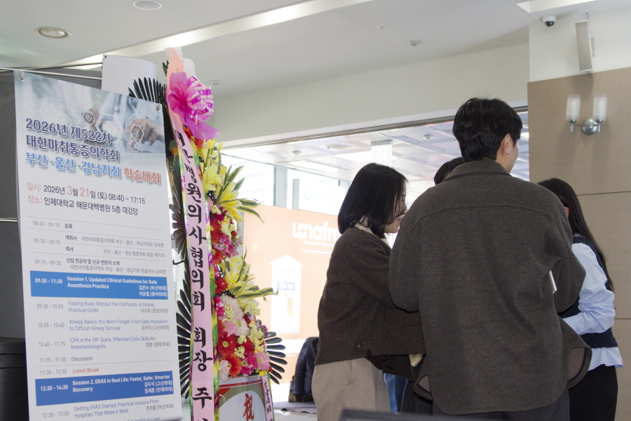 대한마취통증의학회 부산·울산·경남지회 학술행사 학술행사 행사갤러리 행사갤러리 2026년 제522차 대한마취통증의학회 부산ㆍ울산ㆍ경남지회 학술대회 #03 작성일2026/03/23 03:59 조회 24 첨부파일1 003.jpg (용량 : 150.4K / 다운로드수 : 5)