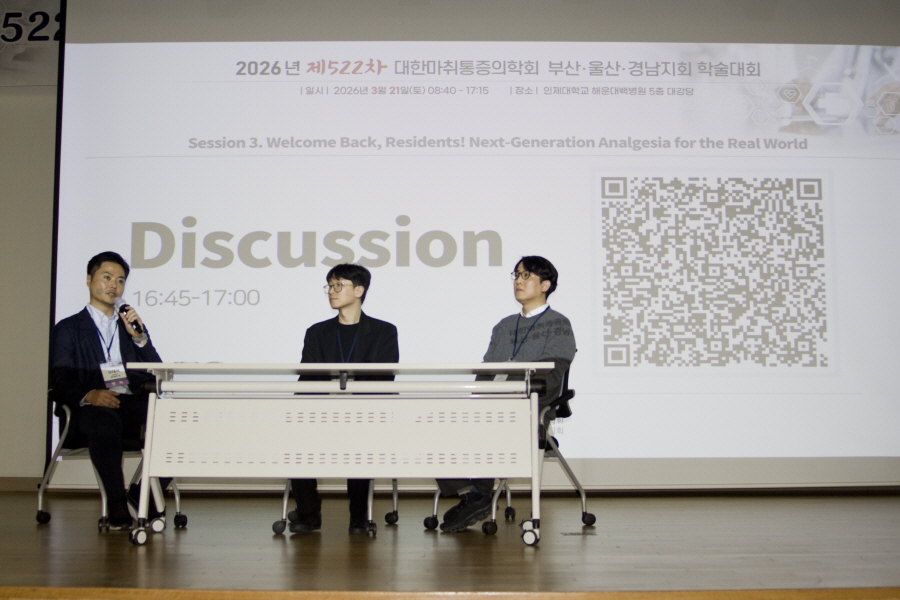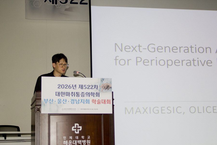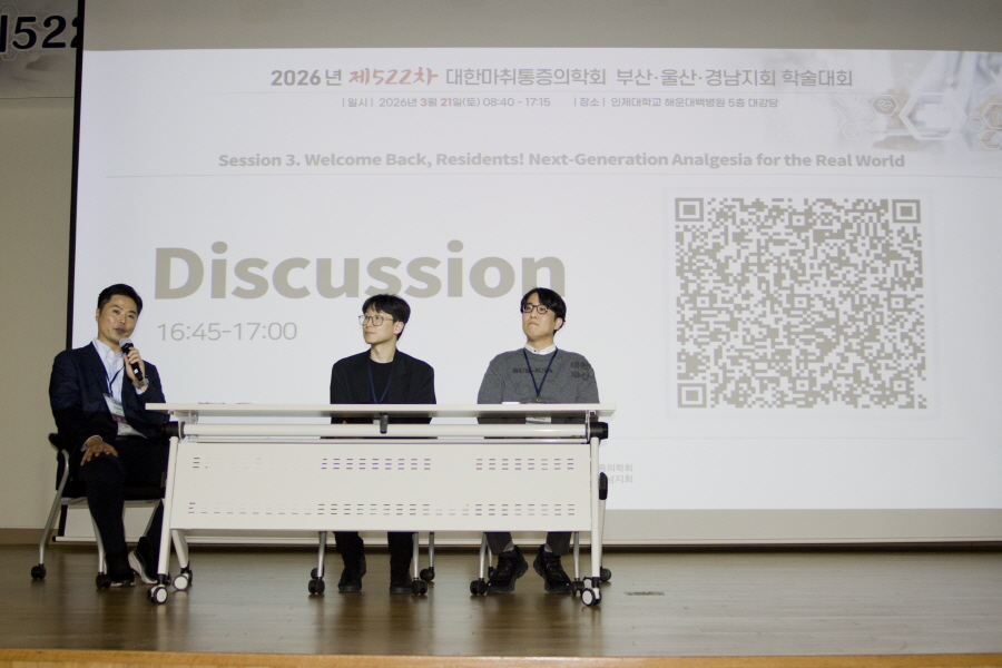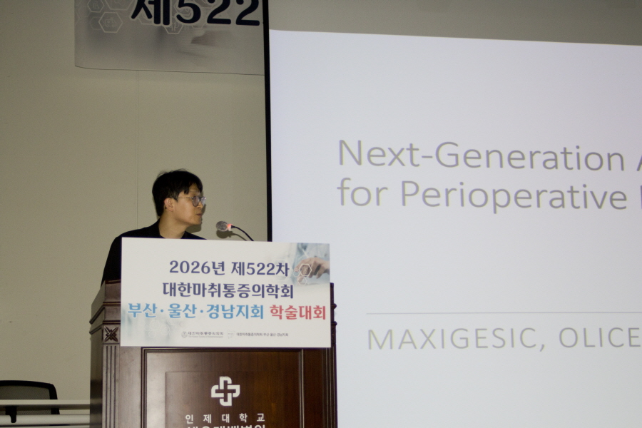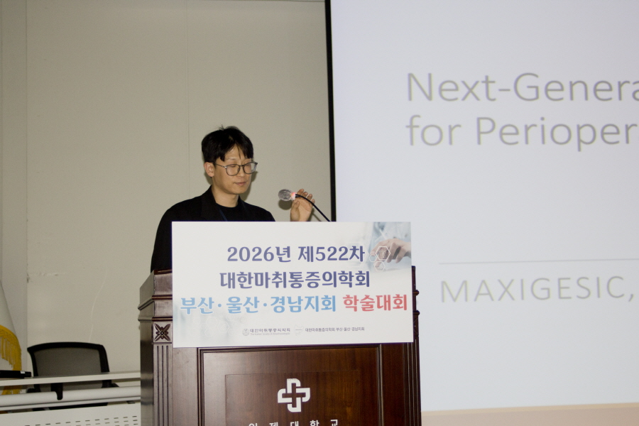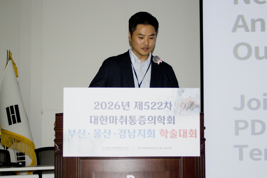 대한마취통증의학회 부산·울산·경남지회 학술행사 학술행사 행사갤러리 행사갤러리 2026년 제522차 대한마취통증의학회 부산ㆍ울산ㆍ경남지회 학술대회 #05 작성일2026/03/23 04:06 조회 132 첨부파일1 005.jpg (용량 : 100.3K / 다운로드수 : 11)